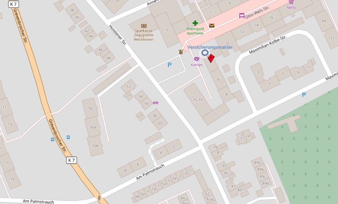 Unser Büro liegt im Ladenzentrum Neuss Weckhoven. In der Regel finden Sie auf dem Parkplatz eine freie Parkgelegenheit. Vergessen Sie nicht Ihre Parkscheibe herauszulegen, So haben wir genügend Zeit für eine umfassnde Beratung. Bitte vereinbaren Sie telefonisch ( 02131 5953606) oder per Mai an info@thl-versicherungsmakler.de rechtzeit einen Termin. Nur so ist es gewährleistet, dass wir uns für Sie die notwendige Zeit nehmen können. Hier nochmals unsere Adresse für Ihr Navi: